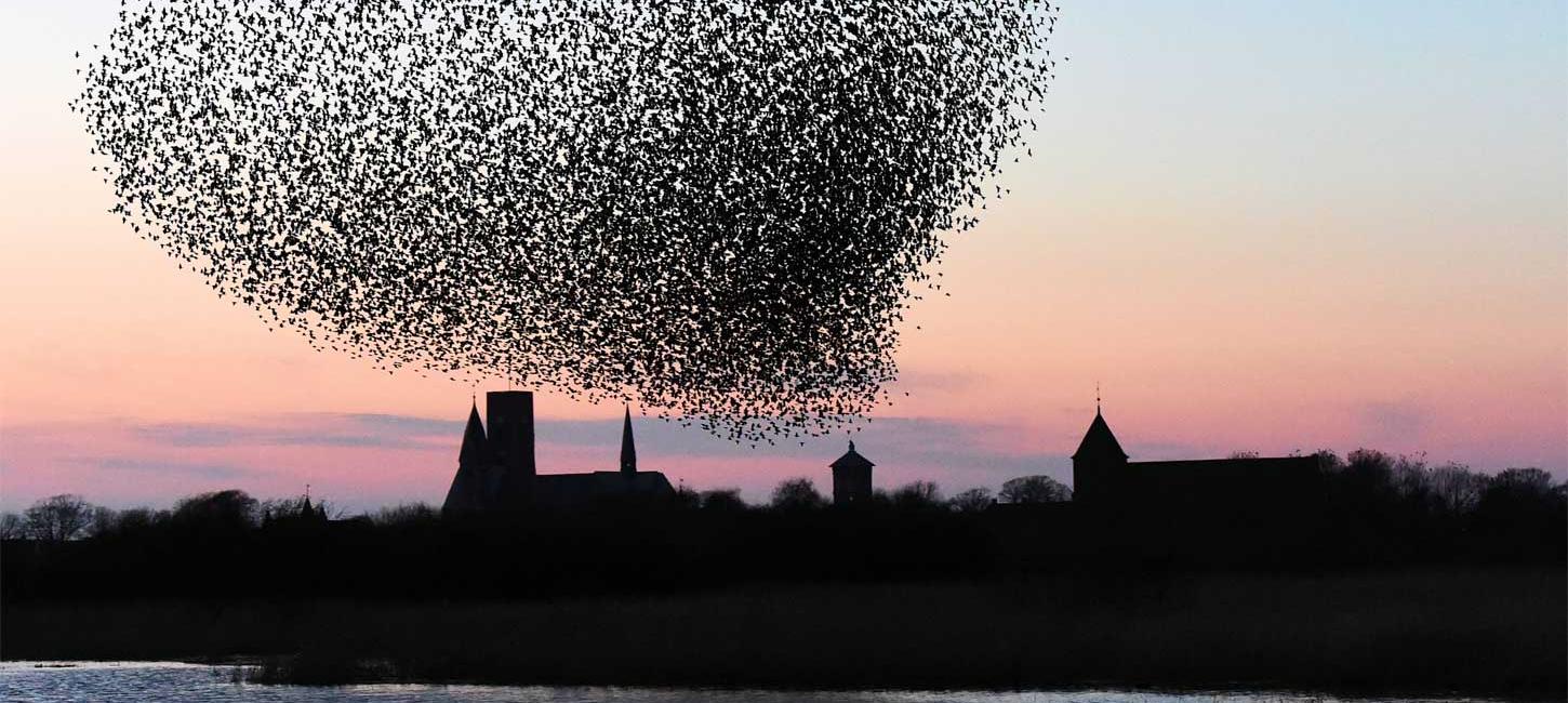 The Phenomenon Starling Magic is a fantastic experience when 100.000, or even 400.000 starlings dance ballet in the sky over the Ribe Marsh.